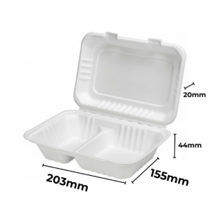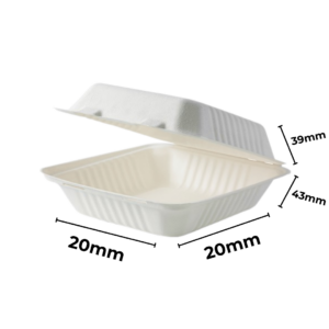 El material -fibra moldeada de caña de azúcar- ofrece alta rigidez estructural. No se deforma fácilmente con la humedad ni con alimentos calientes. Además, soporta microondas y congelación, algo clave en cocinas que trabajan con mise en place o producción anticipada.